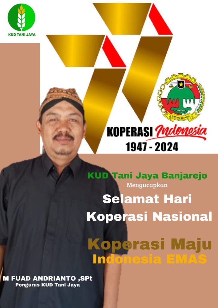 Pengurus, Pengawas dan Pengelola KUD TANI JAYA Banjarejo mengucapkan Dirgahayu HARKOPNAS ke-77 tahun,semoga menjadikan Koperasi ke generasi emas dan bisa berkompeten.